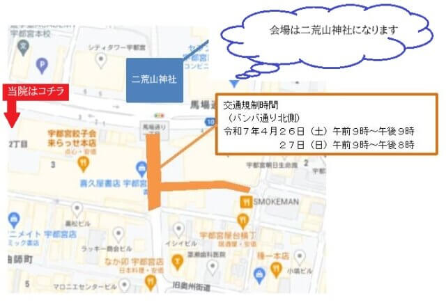 相生駐車場は駐車可能ですが迂回してご利用ください。馬場通り第一第二パーキングは普段通りお停め出来ます。