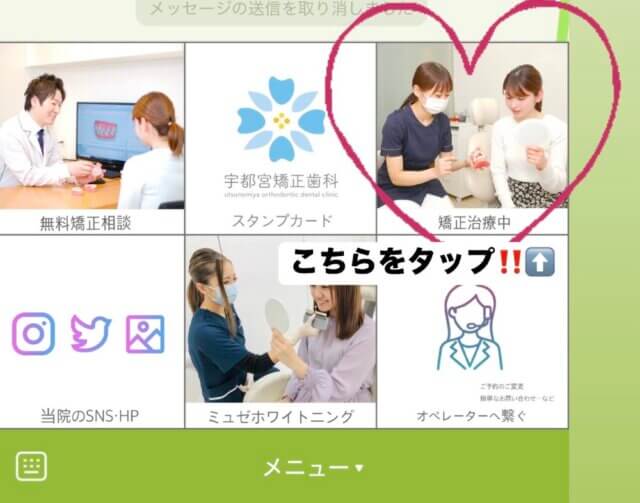 当院の公式LINEのメニューバーより、